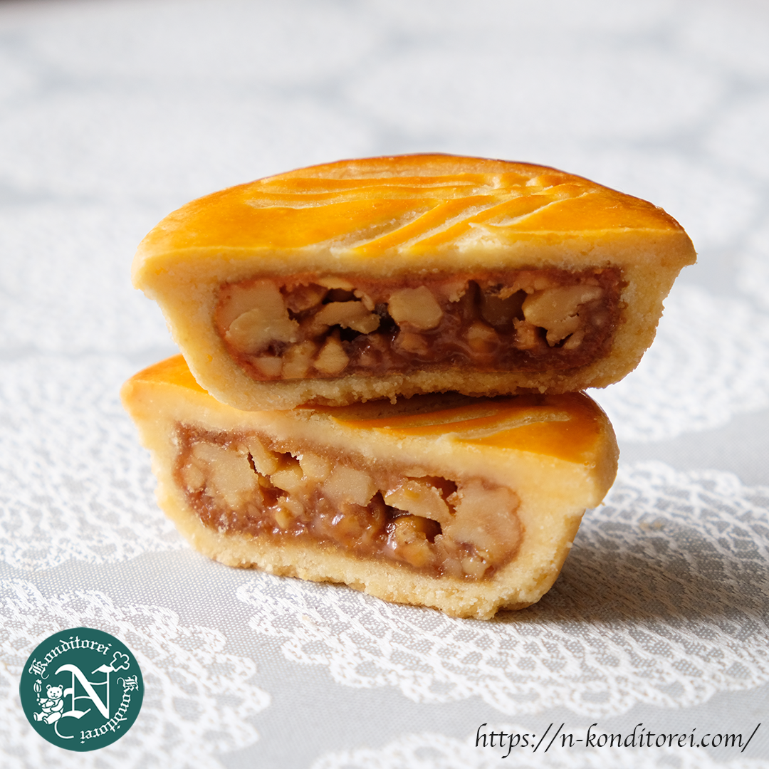 - キャラメリゼしたクルミをバタークッキーの中に詰めて焼いた菓子